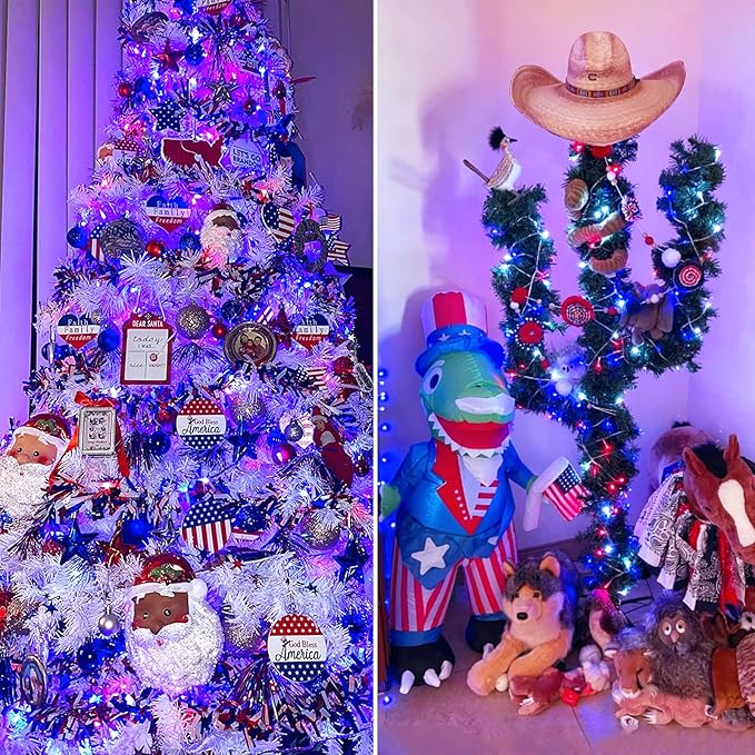 • 【8 Impressive Light Modes】Stay away from single lighting mode! 8 Modes to fit different occasions and moods, creating unique atmospheres! Be it for a holy Independence Day, a romantic wedding, 4th of july decorations, or surprises for your loved ones, these red white and blue christmas string lights will do the trick! To switch between the 8 lighting modes, you only need to press the button on the adapter.