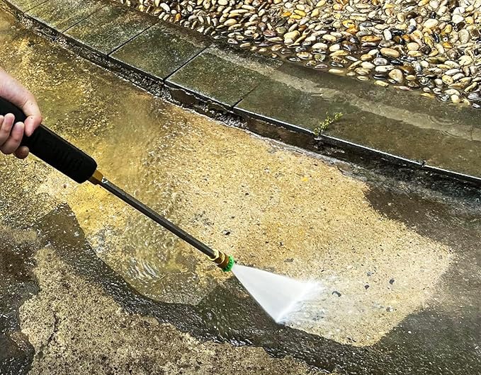 • [Quality Craftsmanship] The pressure washer gun comes with SOLID BRASS inlet with steel 3/8" plug and lock tite, ensuring durability, leak resistance. 1/4" brass quick connector including teflon tape to prevent leak, easy disconnect. The internal trigger is also crafted with superior quality stainless steel, steel pole connector, and ceramic trigger for low vibration and long working life.