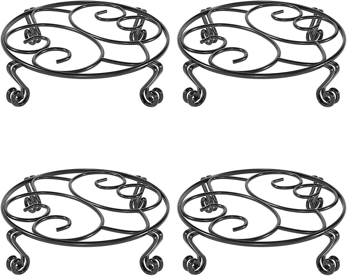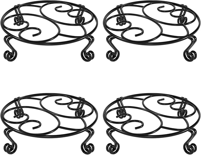 Yimobra 4 Pack Plant Stand for Flower Pot Heavy Duty Potted Holder Indoor Outdoor Metal Rustproof Iron Garden Container Round Supports Rack for Planter (4PC Black 11.8 x 3.1IN)