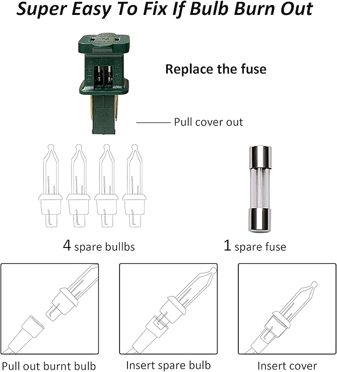 • Easy to Connect: The lights come with both male and female plugs, allowing you to connect up to 6 sets for a total of 400 lights.