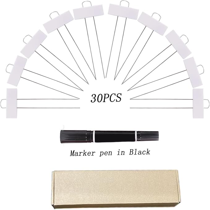 • 【PACKAGE INCLUDING】:Including 30pcs Black metal plant labels and 1pc signs pen. Black plant markers come with white pen. Label area 1.2'' x 3.5'' . Total height for 11 inch, ideals plant labels for outdoot garden waterproof, potted plants and indoor plants, plant markers for outdoor plants. It won’t hinder the growth of plants and help you with planting management.