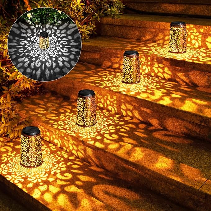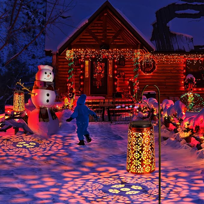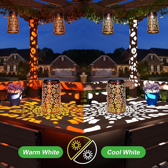 • Beautiful Pattern - Perfect Outdoor Decor: cute solar outdoor lantern with unique hollowed-out design. You can hang it on the porch, tree, pergola with the hangring, or placed on the tabletop, lawn, ledge. Present a vivid pretty pattern on the table or the ground, make your patio special. Perfect for garden, yard, backyard, pathway, walkway, courtyard, terrace, balcony, home decoration and as a unique gift for any occasion like Easter, Christmas, Wedding, Party, Halloween, Birthday, etc.