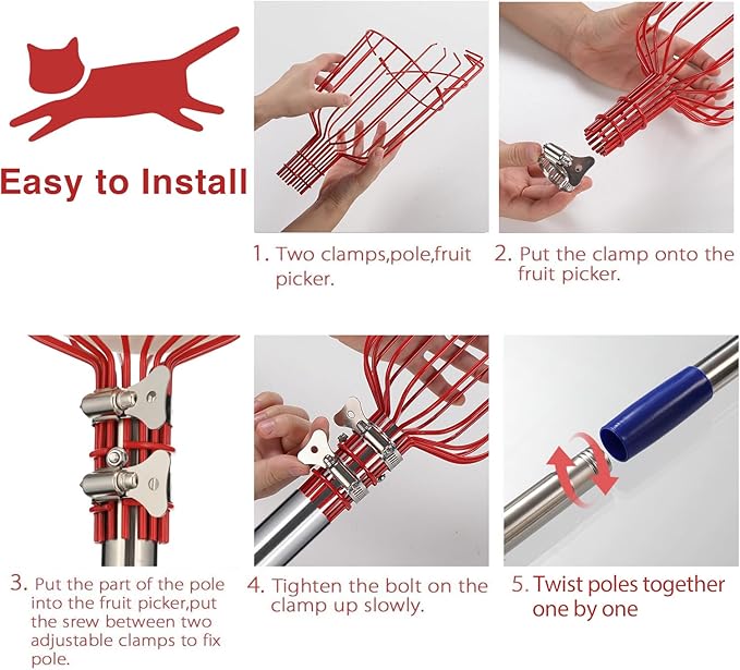 • ▶【Easy to Install】5 mins to assemble this fig picker by screwing all parts together with no extra tools required. Great Timesaver for fruit tree picker.