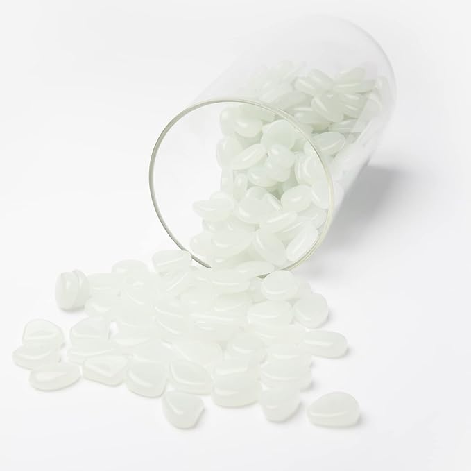 Oubest Glow in The Dark Pebbles/Glow Stones/Glowing Rocks Blue Decor for Garden/Fish Tank/Aquarium/Walkway/Driveway/Plant Pots/Bonsai (200, White)