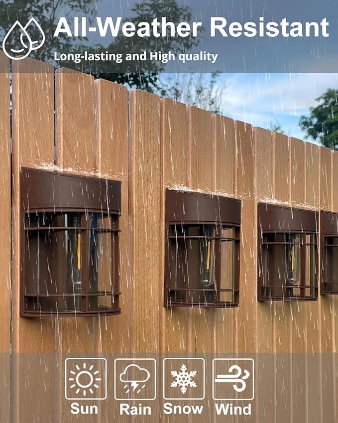 • Vintage Brown Fence lights - Give off beautiful Warm, and soft lighting, makes your garden look nicer, cozier, and more inviting. Energy-saving, No Heat and long lifespan means no bulbs to replace. (3000K warm white light). Design with U.S. Patent Certification