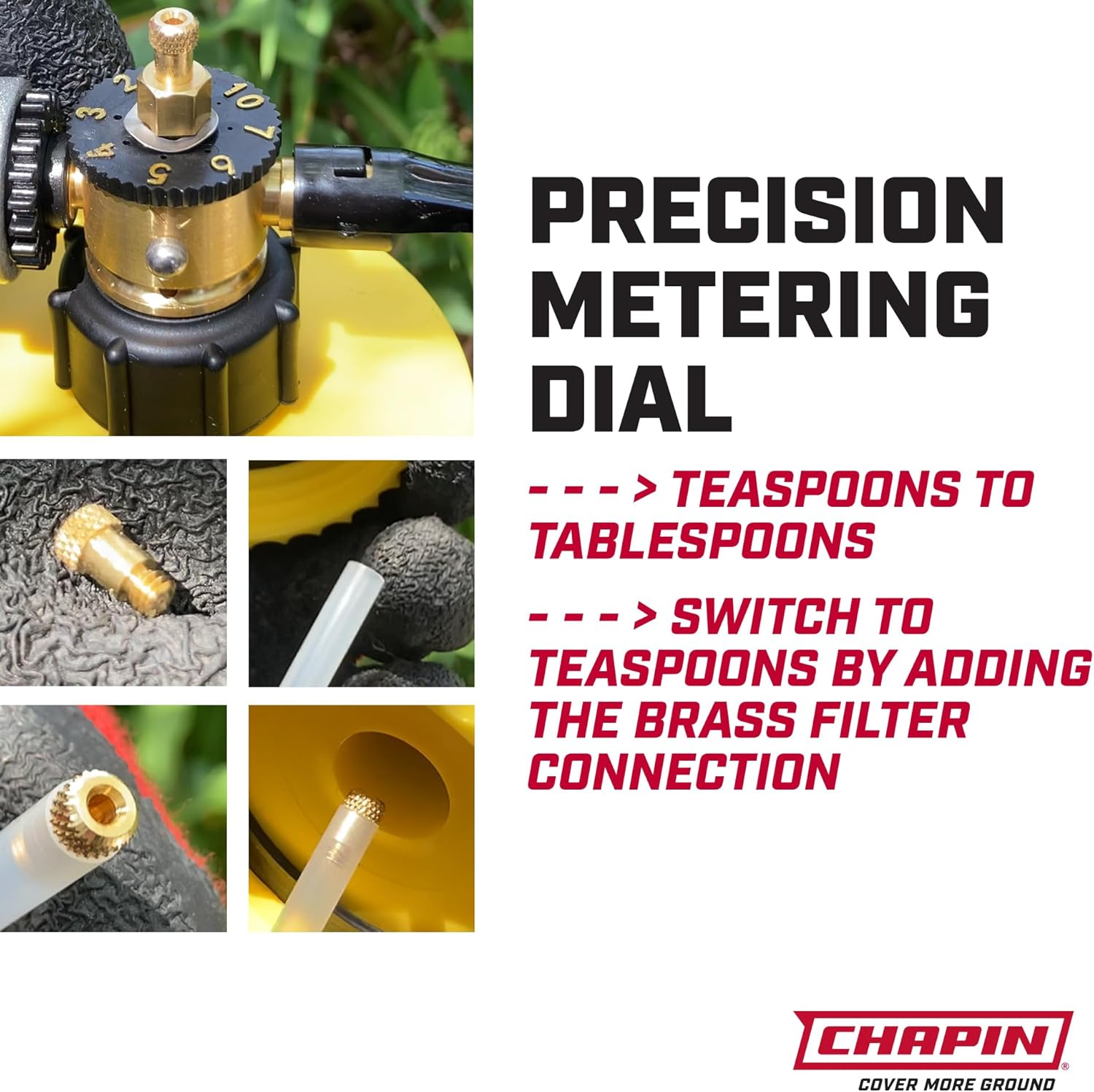 • BACKFLOW PREVENTION AND METERING DIAL: built-in anti-siphon valve prevents chemicals from flowing back into your hose and water supply; durable mixing head with 16 options on the spray dial to precisely spray the correct amount of chemical