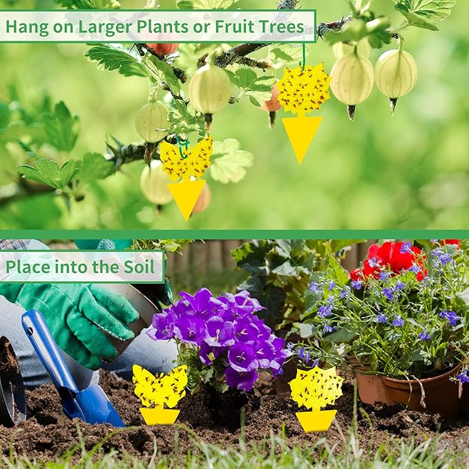 • 【Easy to Use with Twist Ties】Our fly traps are very easy to use: just place them directly into the soil, or attach the included twist ties and hang them from larger plants or fruit trees in your orchard. Keep your home and garden free of fruit flies and other flying insects such as whiteflies, aphids, gnats, fungus gnats, mosquitoes, thrips, leafminers, and olive tree flies.