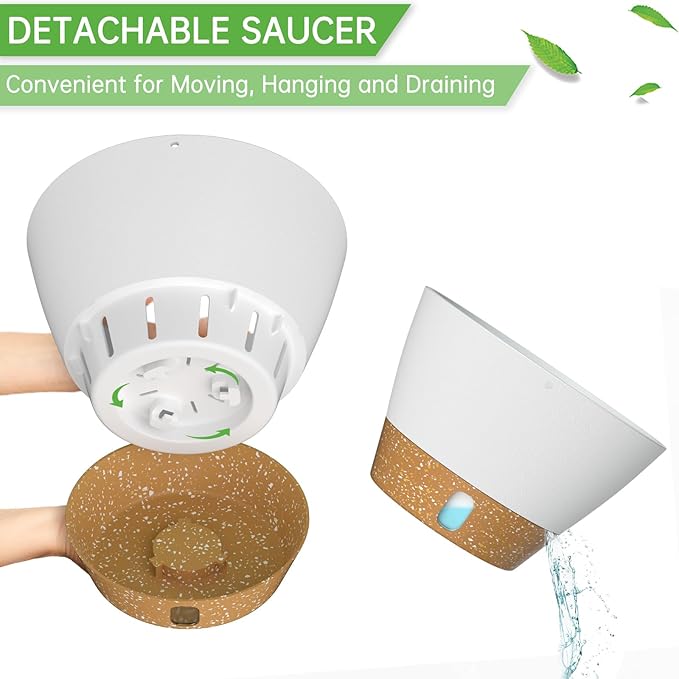 • Snap-in Tray with Visible Water Level: The tray can be removed for easy cleaning of the flower pot. The self-watering flower pot with drainage holes can drain excess water to the tray, so the tray will store an amount of water for the plant(Longer than 7 days). And you can water the plants by looking at the water level.