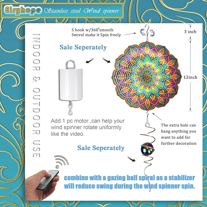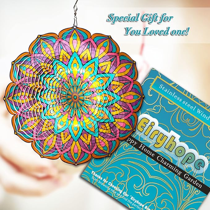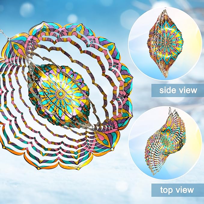 • 【 Easy to Use 3D Wind Spinners 】The garden wind spinner is easy to shape and spin. Its 3D design makes it easy to transform into a 3D hanging wind sculpture. This mandala wind spinner's ingenious metal construction catches more breezes to spin. The 12-inch wind spinner is an eye-catching focal point.