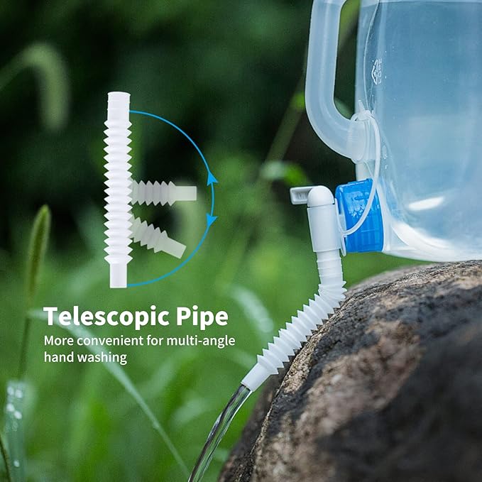 • COMPACT, PORTABLE, AND REUSABLE: This water container is space-saving and lightweight, designed to fold easily for storage. The soft molded handle makes it easy to carry, perfect for outdoor activities such as hand-washing stations, automobile/RV water storage, camping, hiking, backpacking, hunting, fishing, BBQs, picnics, parties, and festivals. It’s also ideal for household and garden use.