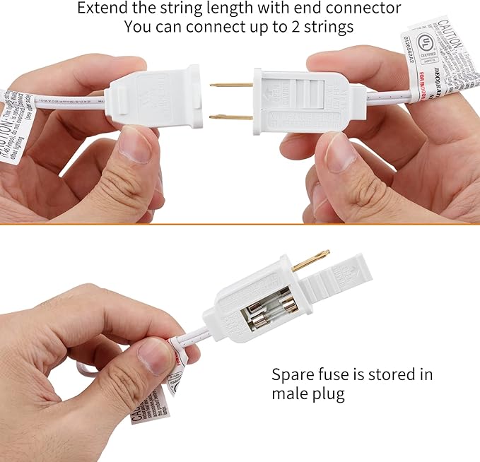 • 50 feet long string with 50+2 spare clear C9 Bulbs, end to end connectable