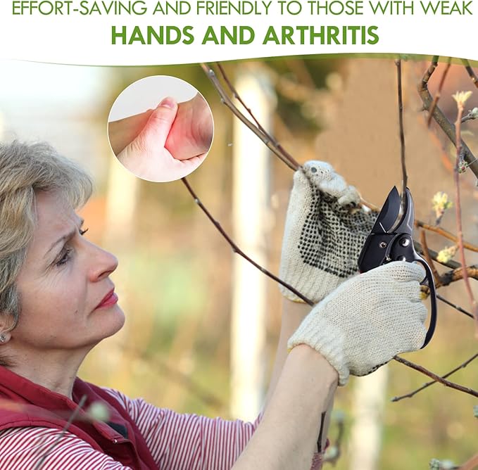 • 💞EASY TO OPERATE AND EFFECTIVE LOCKING: The scissors are reliable and easy to use. They feel comfortable and durable, suitable for a variety of cutting tasks; Excellent ability to handle difficult tasks such as cutting grass, trimming overgrowth and cutting large diameter branches.