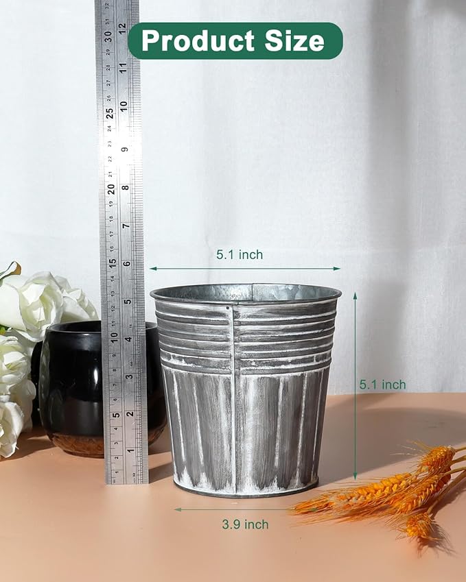 • 【Size of Metal Pots】There are 6pcs metal planters in a package, Topper opening diameter 5.1 inch, bottom diameter 3.9 inch, barrel high 5.1 inch.
