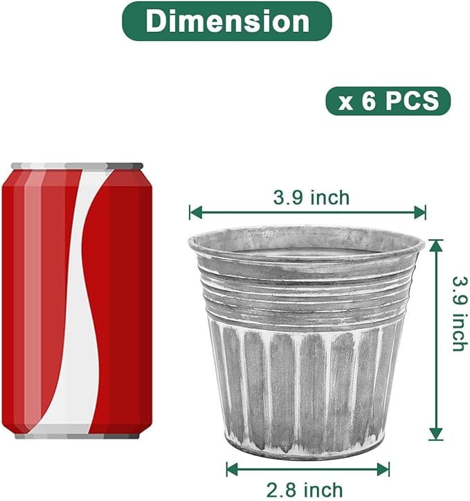 • 【Size of Metal Pots】There are 6pcs metal planters in a package, Topper opening diameter 3.9 inch, bottom diameter 2.8 inch, barrel high 3.9 inch.