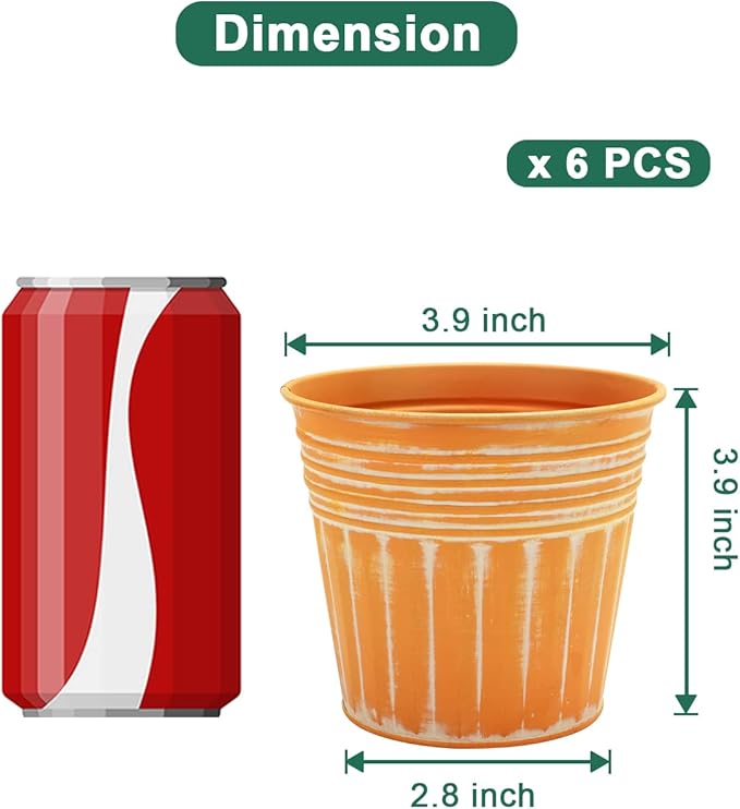 • 【Size of Metal Pots】There are 6pcs metal planters in a package, Topper opening diameter 3.9 inch, bottom diameter 2.8 inch, barrel high 3.9 inch.