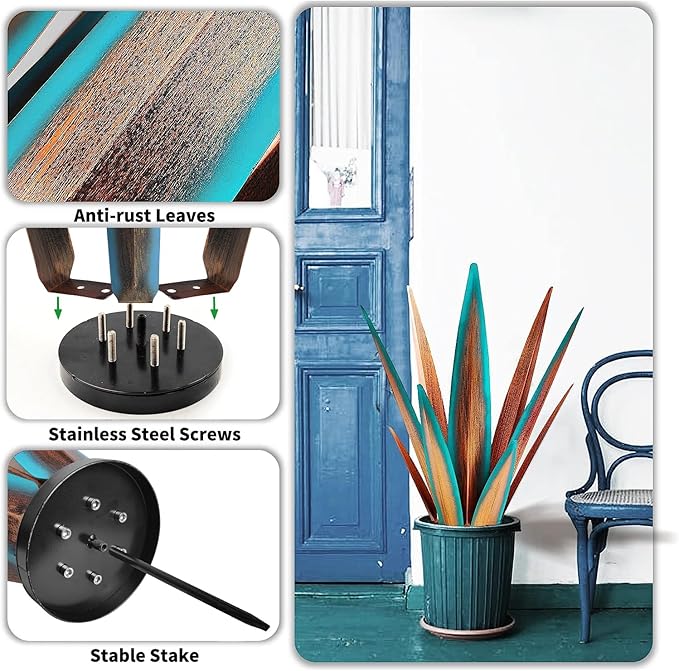 • ❤ [Easy to Care] - This metal agave plant is perfect DIY outdoor patio decoration ornament, easier to care for than real plants, no need spend time watering or fertilizing, and worrying about dying.