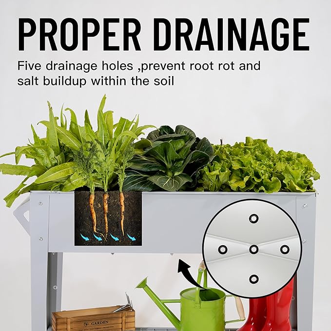 • ใ€400LBS Heavy-Duty & Anti-Rustใ€‘ Made of powder-coated steel (not cheap wood!), withstands 400lbs without bending. 3x thicker coating vs standard planters prevents rusting for 3+ years โ€“ even in rain/snow.