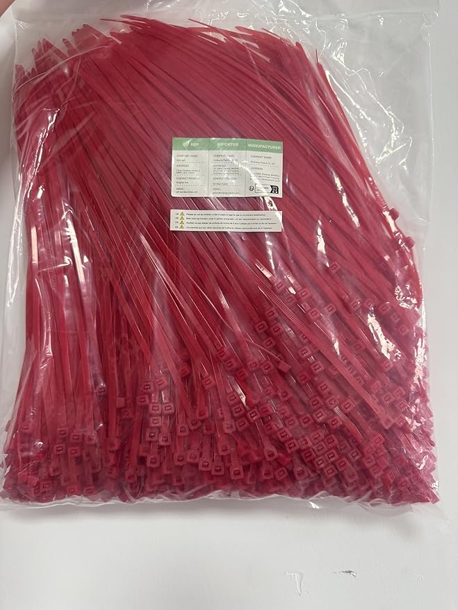 XINGO 1000 PCS Red Zip Ties 8 Inch, 60 LBS Tensile Strength, Self-Locking Nylon Plastic Nylon PA66 Wire Ties for Indoor and Outdoor Use