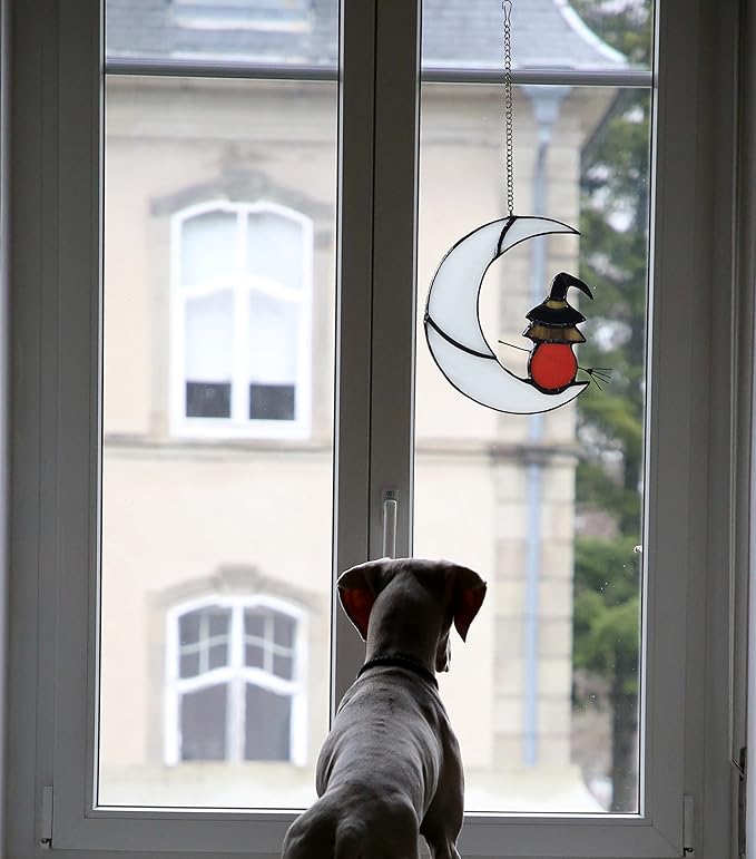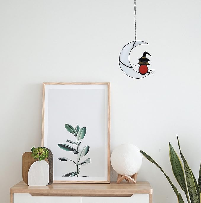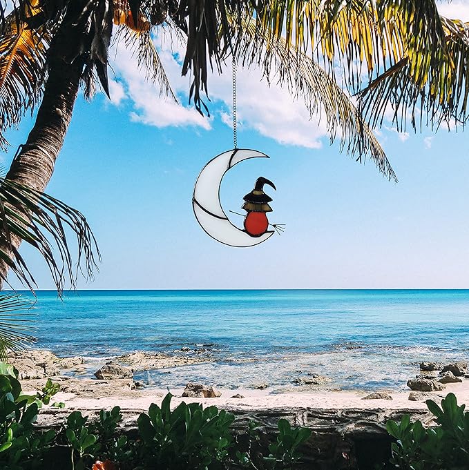 • 【Material】The cute Moon witch suncatcher has been produced with stained glass.