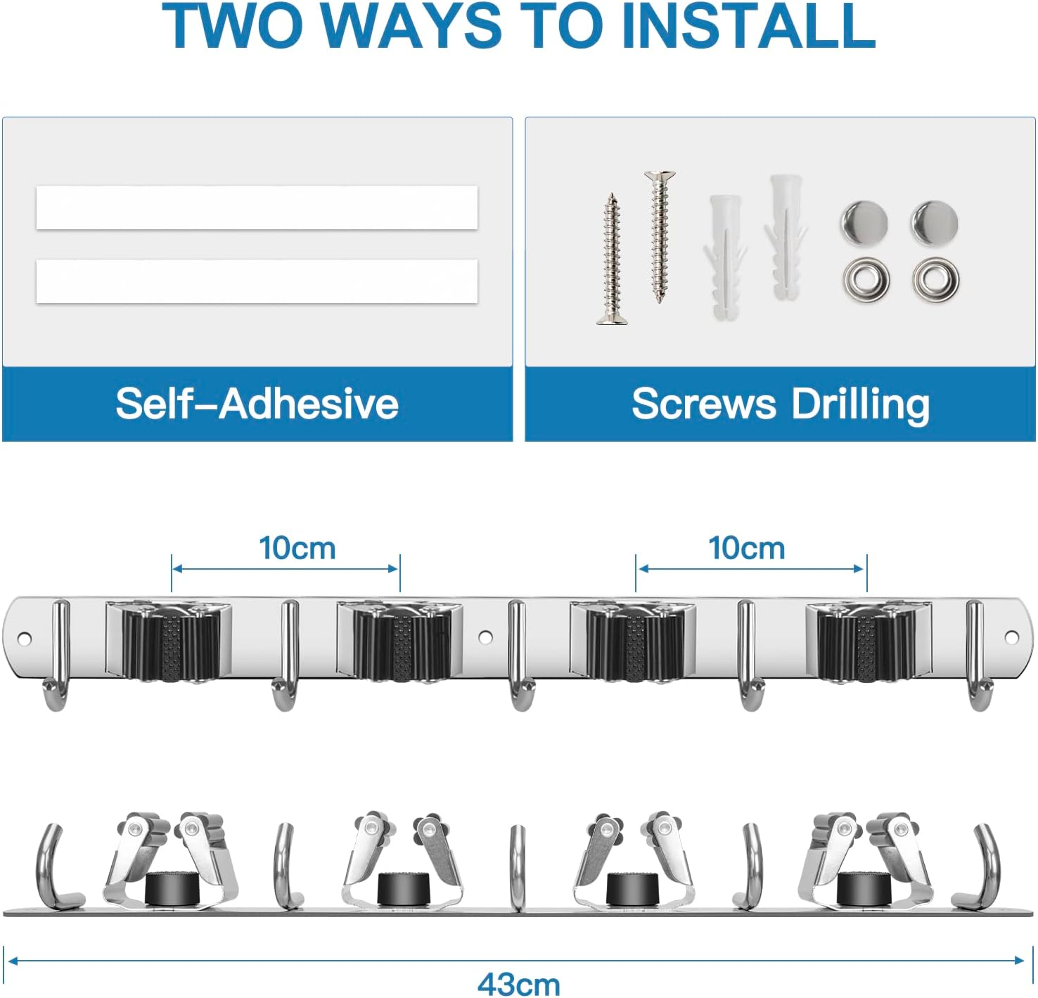 • Heavy Duty: Mop holder grip everything tightly and securely without slip. It can hold up to about 9 tools in total. Keep your place cleaned up and keep things organized