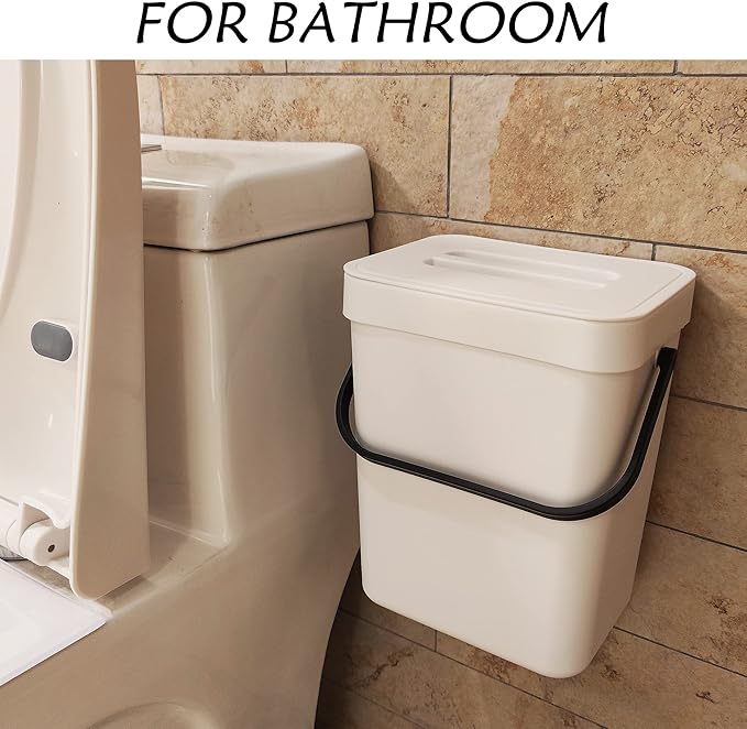 • Indoor Compost Bucket : 5L/1.3 gallon capacity. Made of sturdy and non-toxic plastic, The hanging trash can is durable and easy to clean with soap and water.