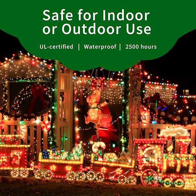 • 【Steady On/Twinkle & Safety Use】:The light set can be steady on/Twinkle(Use the Flasher Bulbs included),and easy to fix and replace with spare extra bulbs and fuses when one of the bulbs burn out or break.Thicker green wire with strong insulated copper core, tangle-free to use.High quality UL certified products ensure the safety to you and your family.