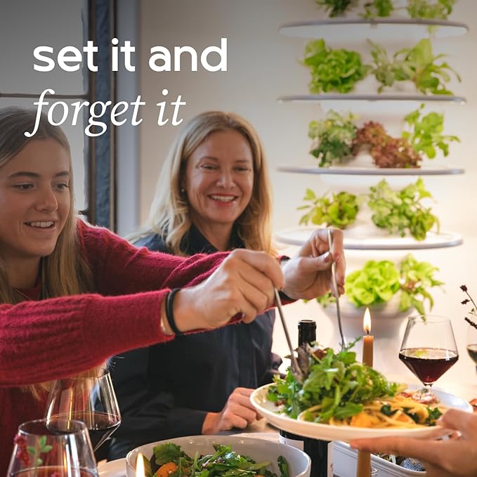 • EASY, NO GREEN THUMB REQUIRED: Just minutes a week to add water and nutrients - our advanced hydroponics system does the rest! The automated water distribution feature disperses water evenly to all plants (NO SOIL, NO MESS!). Healthy, fresh food year-round from a fully sustainable source.