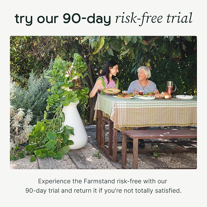 • GROW INDOORS OR OUTDOORS: Grow 36 plants at a time in your Farmstand. Easily add additional levels when you want to grow more on your Farmstand. Grow in a sunny spot outside in your backyard or balcony - or grow indoors with the help of our optional Glow Rings (*Sold Separately*).