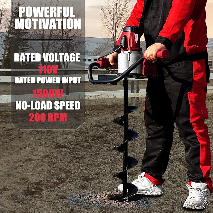 • 【1500W Motor: Rotational Speed】: 200 rpm; Torque: 90 ft-lb. Electric post hole digger enables multiple diggings in a quick succession manner. You can find it energy and labor-saving during application.