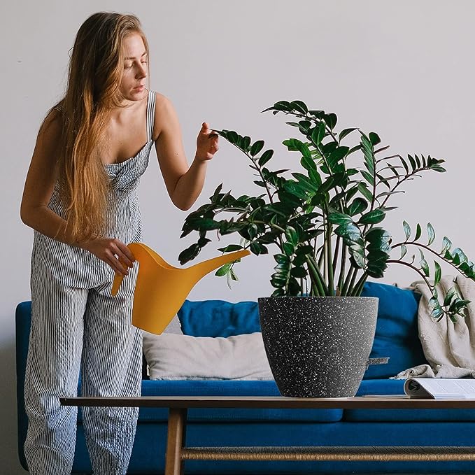 • Modern Design: Matte black finish and round shape highlight plant foliage.