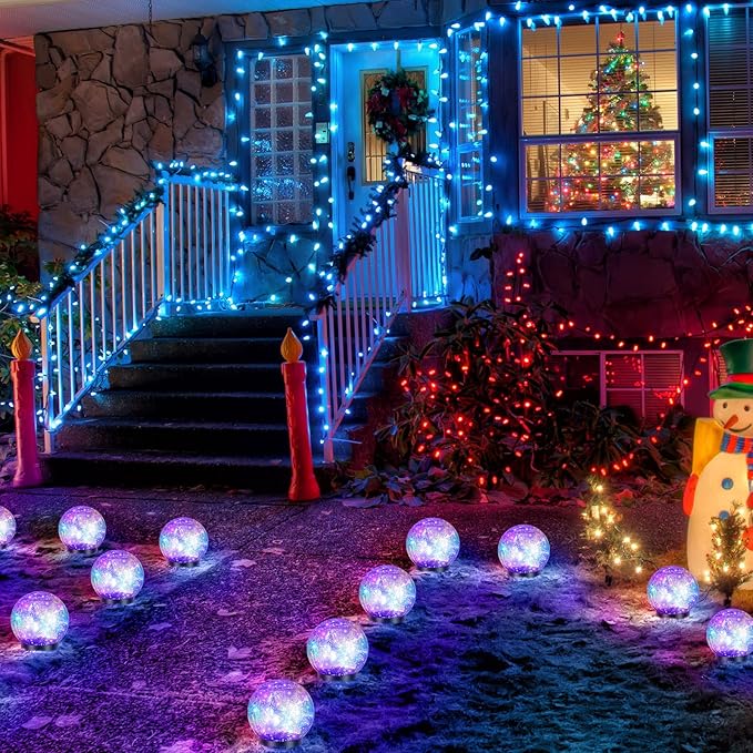 • Quality and Waterproof: glass decorative balls with lights are made of plastic and cracked glass, waterproof and can withstand harsh weather conditions, like wind, snow, rain, and run smoothly; The location of solar cell panel is inside globe light, which can effectively keep it away from dirt, debris and will not get broken easily or replacing frequently