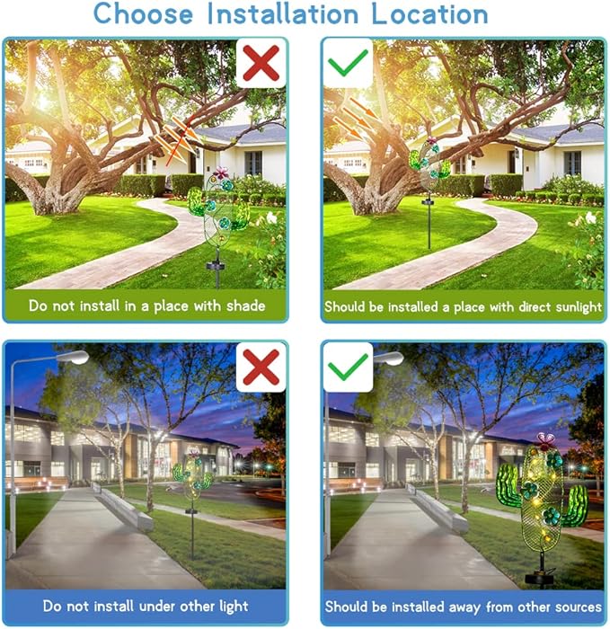 • Solar Cactus Garden Lights: Outdoor solar garden lights make it a great creator of romantic atmosphere. When the warm yellow twinkle LED lights lights up, it adds vitality to your garden, creating a romantic atmosphere and good mood.