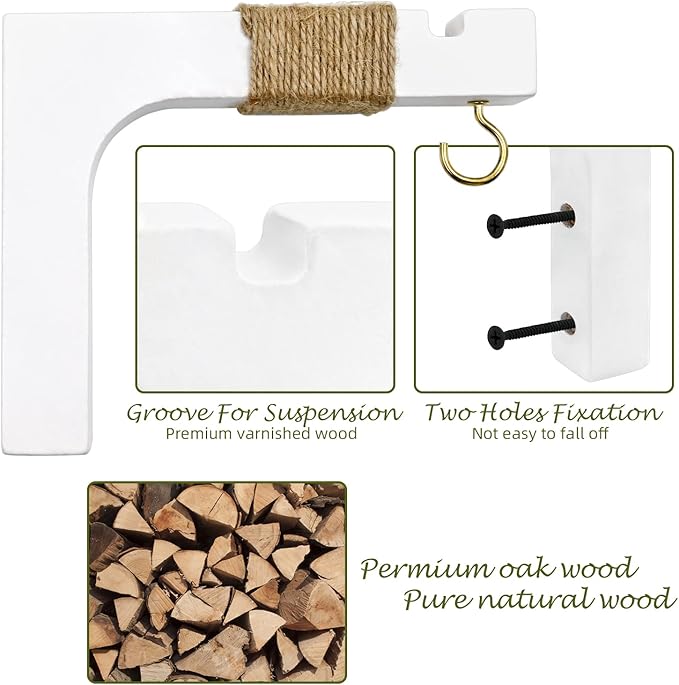 • 【Package Contents】You will receive 2 pieces hanging plant hooks with 4 mounting screws and 4 drywall anchors, the wooden hooks size is approximately: 6 inches long, 5 inches high and 1 inch thickness. Hemp rope attached as decor for farmhouse style. Enough for you hanging planters for indoor plants and other decors everywhere in your home.