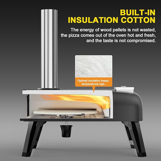 • 60-Second Authentic Pizza:Heat wood pellets for 15 minutes, then cook crispy stone-fired pizza in just 60 seconds. Perfect for backyard parties or camping trips