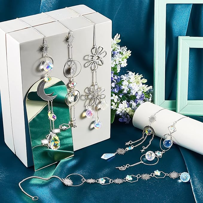 • Beautiful Appearance: these crystal window sun catchers are silver, look beautiful and elegant, combining well with the sun, moon, star and other elements. Meanwhile, they are able to reflect charming light in the sunlight, to add a touch of color and bring a dreamy visual effect