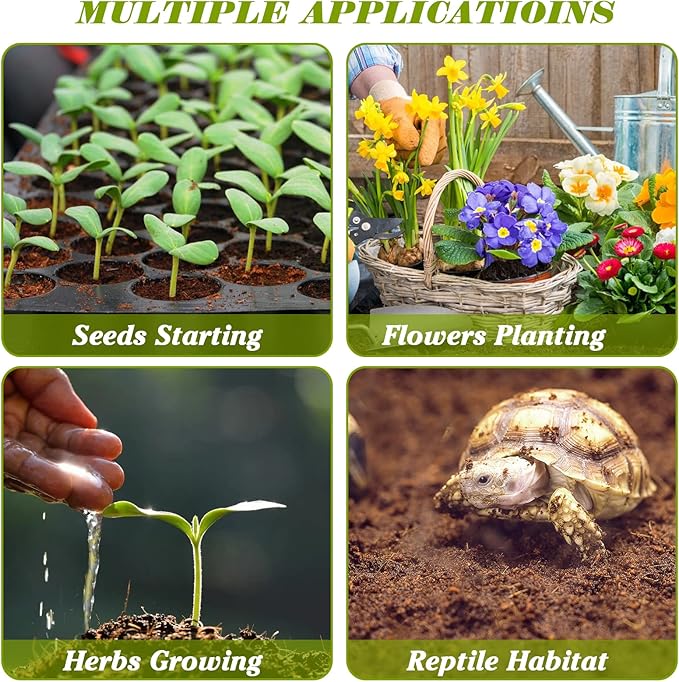 • 🌴Easy to Use: Light and small but with water became a big pile, compact and Rehydrates quickly, so it is easy to use, you can put them in the container and add water together, then you can put it in the flower pot or plant pot to use, also it is very convenient to carry