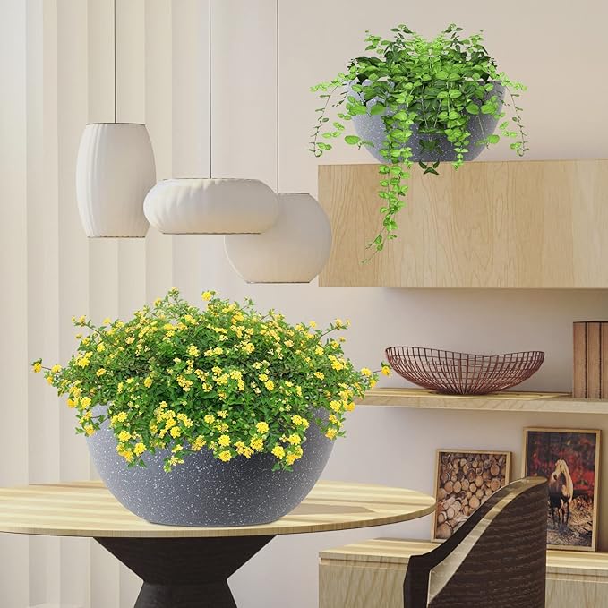 • 【Weather Resistant and Durable 】 Allow you to enjoy these hanging plant pots for outdoor plants in all types of weather. Built to withstand intense sun and harsh winter temperatures, they are free from fade, frost, crack and peel damage.