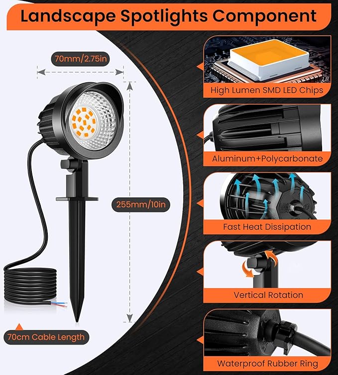 • Low Voltage, High Safety: Designed to work with DC/AC 12-24V systems, these landscape lights are compatible with most low-voltage landscape lighting setups. (Please note: A transformer and low-voltage wires are required but not included.)