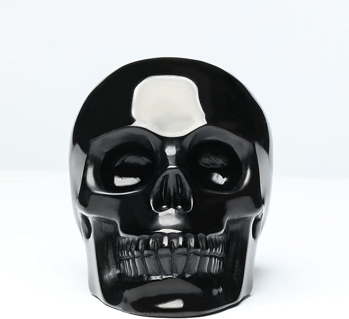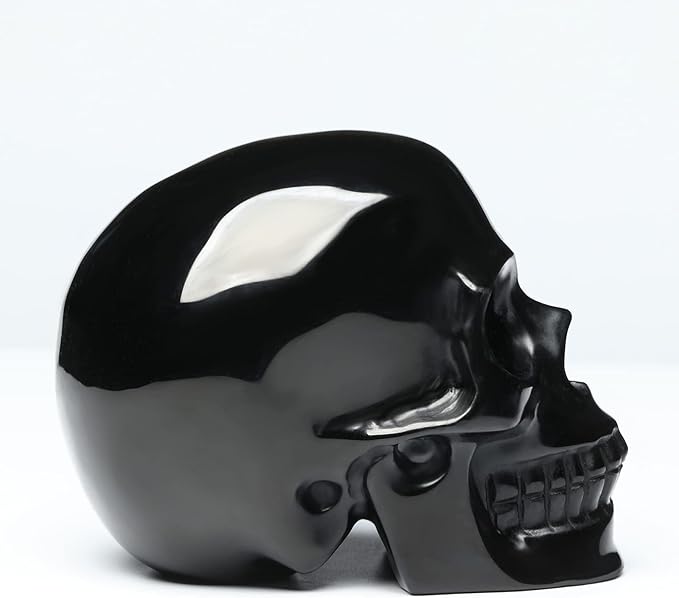 5''Natural Black Obsidian Crystal Skull Head Hand Carved Reiki Healing Stone Statue Healing Home Office Art Room Decoration