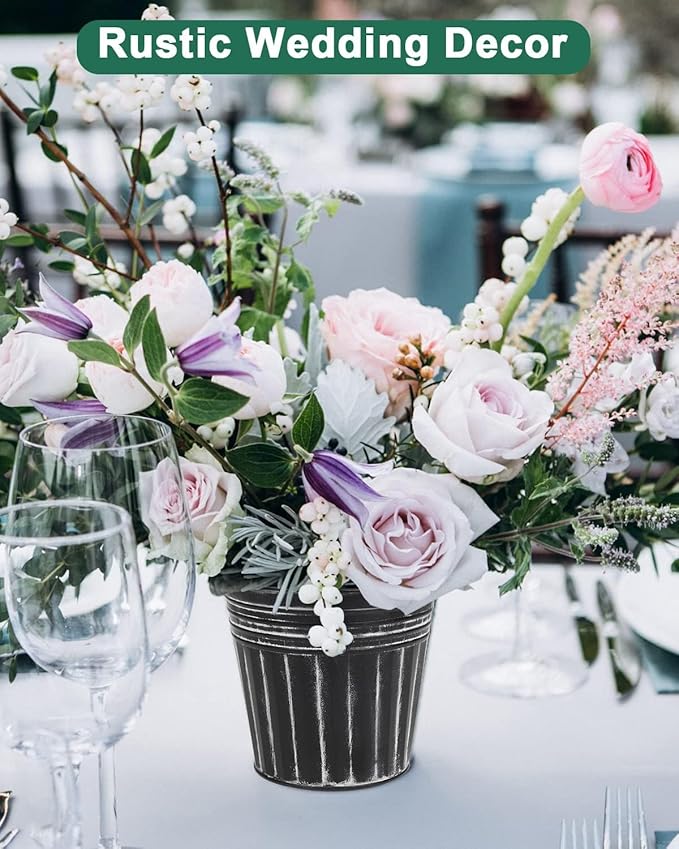 • 【Great for More Scenes】Metal bucket flower pot with rustic coating will not fade and crack, suits for outdoor & indoor, windowsill, living room, kitchen, balcony, garden and more. Used for succulents, herbs or other flowers. Rustic and vintage finish great for decorating your home or office, also used as a gift for landscape design lovers