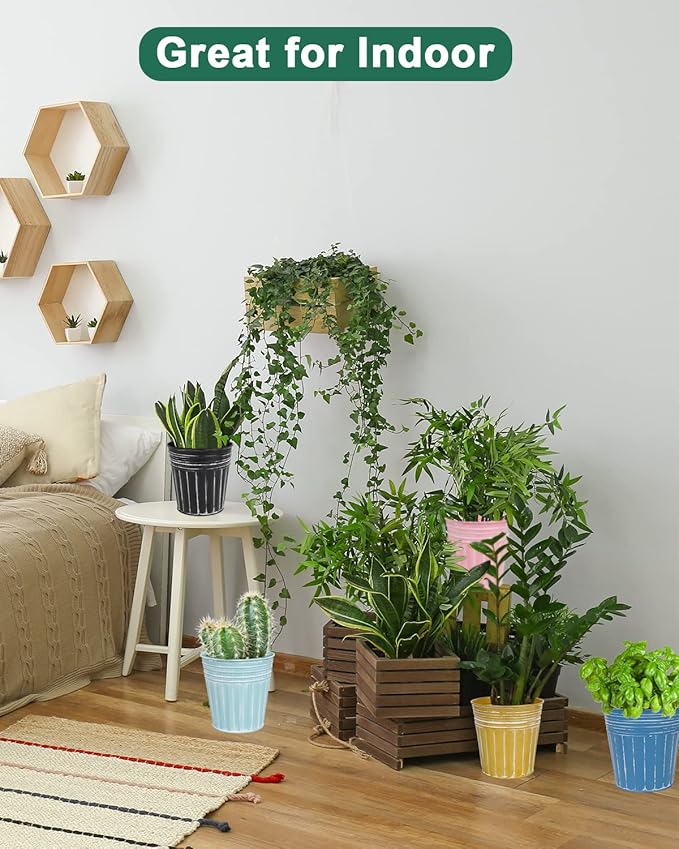 • 【Great for More Scenes】Metal bucket flower pot with rustic coating will not fade and crack, suits for outdoor & indoor, windowsill, living room, kitchen, balcony, garden and more. Used for succulents, herbs or other flowers. Rustic and vintage finish great for decorating your home or office, also used as a gift for landscape design lovers