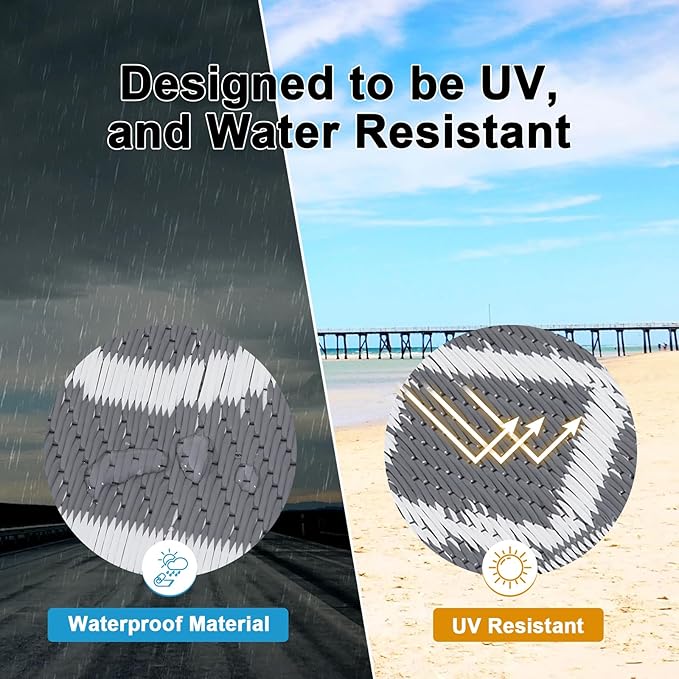 • Premium Material Outdoor Doormat: This reversible outdoor doormats are made from high quality recycled plastic straws and be woven tightly, durable enough, no fade, water resistant. It's soft and comfortable to walk on barefoot.Plus, the high-end UV coating and edge heat treatment technology prevent fading and sun damage without worrying about wear and tear.