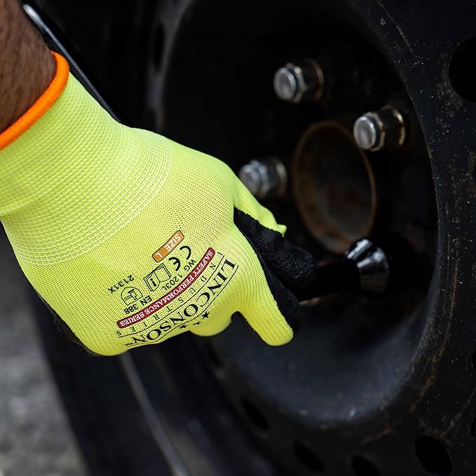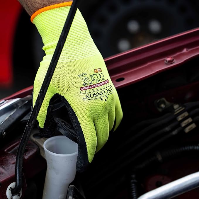 linconson 12 Pack Safety Performance Series Construction Mechanics Wrinkle Latex Work Gloves