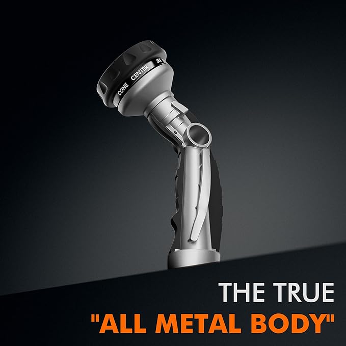 • 【Heavy Duty Metal Hose Nozzle】Constructed with premium zinc-alloy material, this hose nozzle sprayer is solid & strong to resist daily drops and shocks. The bronze powder painting, TPU coating and rubberized bezel dial can enhance durability & flexibility and withstand hard impacts & heavy force. A long-lasting garden hose nozzle you can count on many years.
