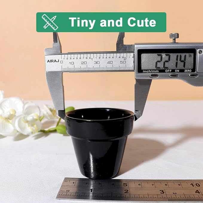 vensovo 48 Pcs 2" Tiny Ceramic Plant Pots with Drainage Hole - Black Small Mini Ceramic Pottery Planter Ideal for Indoor/Outdoor Plants, Crafts, Wedding Favors