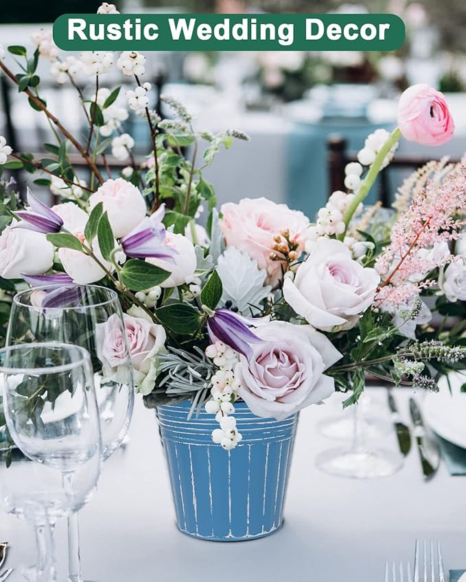 • 【Great for More Scenes】Metal bucket flower pot with rustic coating will not fade and crack, suits for outdoor & indoor, windowsill, living room, kitchen, balcony, garden and more. Used for succulents, herbs or other flowers. Rustic and vintage finish great for decorating your home or office, also used as a gift for landscape design lovers