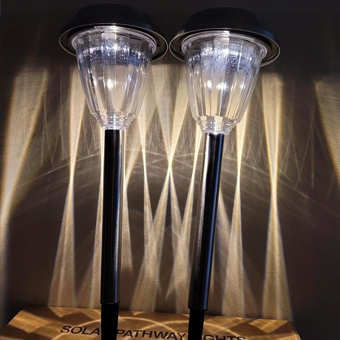 • Solar Pathway Lights: 12 pack with high transmittance shade can better project attractive patterns, adding bright warm white light to your garden and creating a pleasant nighttime atmosphere