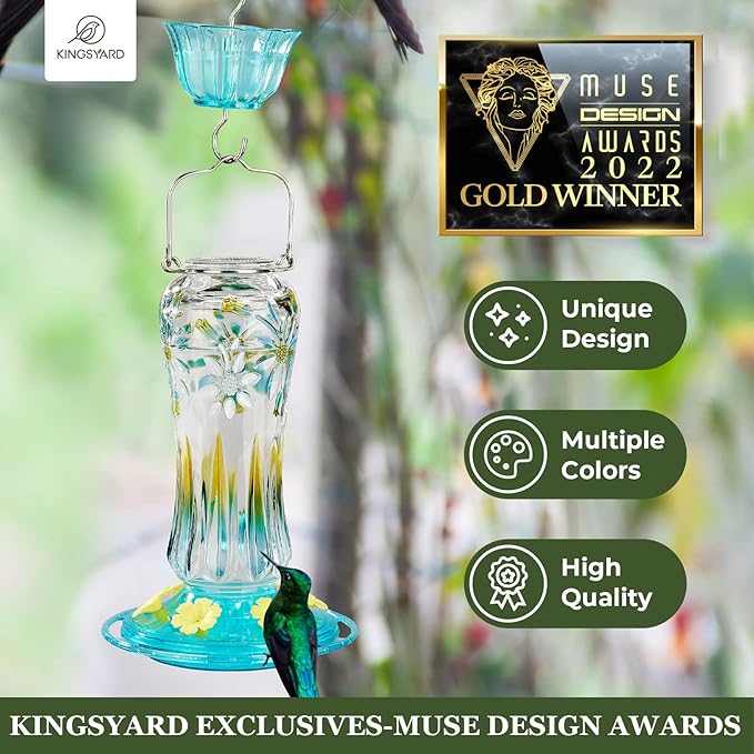 • 【GOLD DESIGN AWARDS】This Kingsyard Hummingbird Feeder is Gold Winner in MUSE DESIGN AWARDS; A sweet gift for parents, children and friends; A bird watching gifts for people who love birds; A unique gifts for Birthday, Mother's Day, Thanksgiving and Christmas