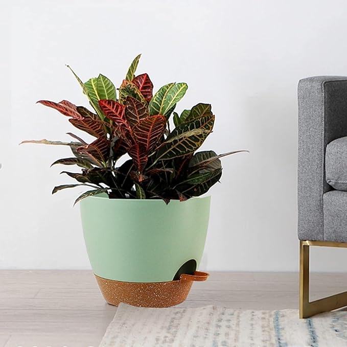 • Self-Watering Combo: Set of 3 plastic planters with mesh drainage holes and deep reservoir for indoor outdoor garden plants and flowers