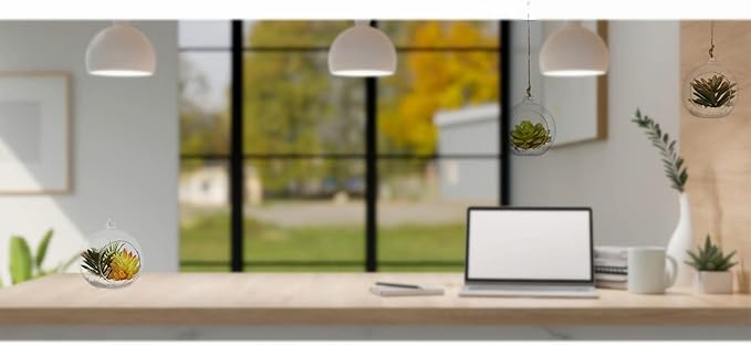 • FLAT BOTTOM: The hanging glass tea light holder is easy to hang up through the little hoop on the top. The glass globe also has a flat bottom which can lay flat on the table.